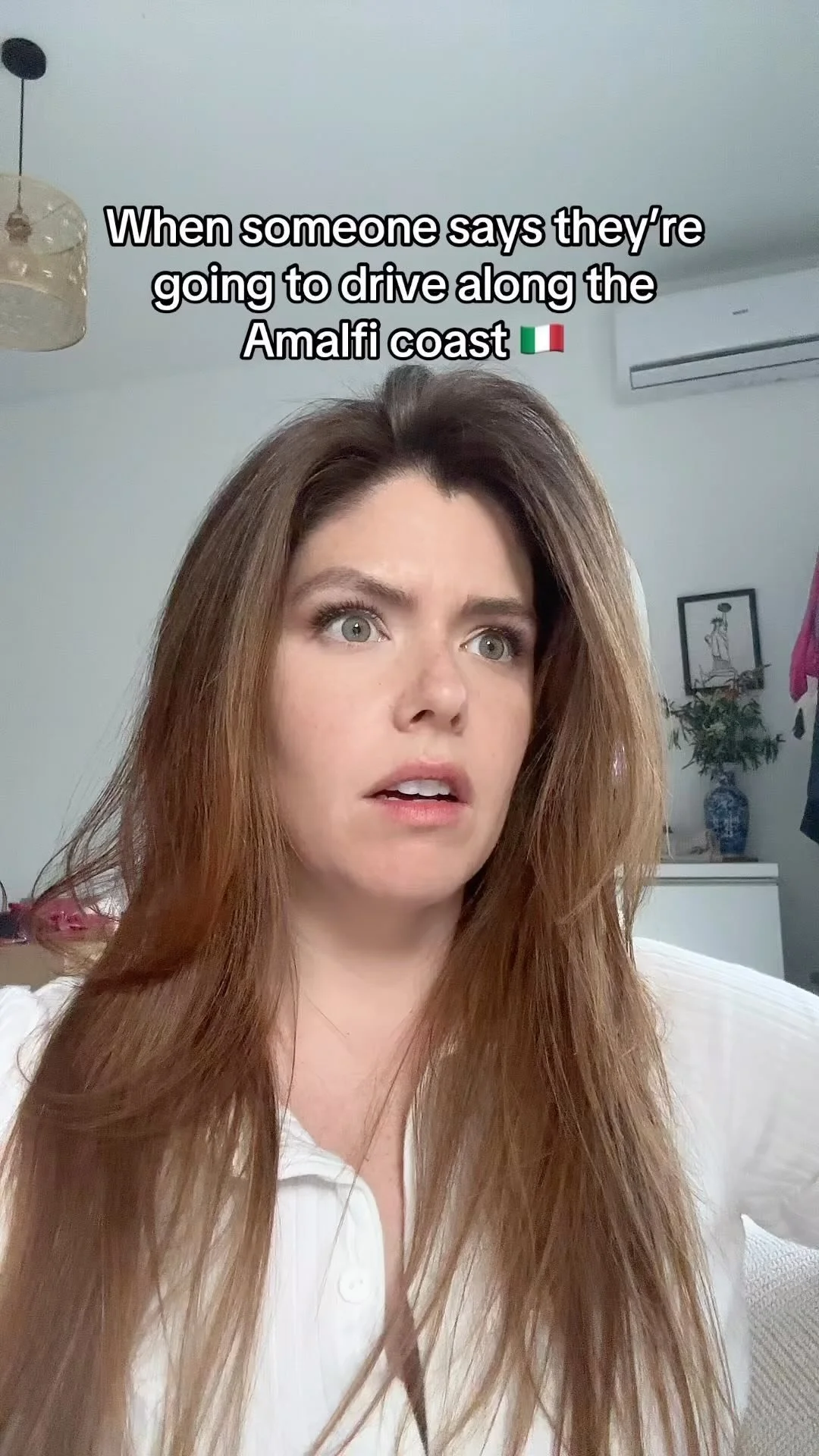 • Sarah L. Thompson Tik Tok Creator in red vintage fiat 500 driving along the Amalfi coast